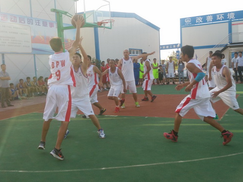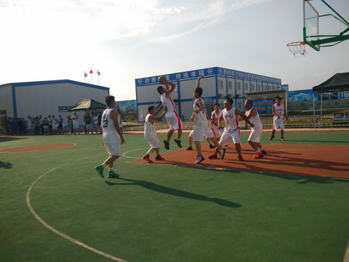 在此次的比賽中,參賽的單位有監(jiān)理3標中企建發(fā)、1標中鐵十二局、4標四川場道、3標中國華西、5標上海路橋、8標中鐵航空港、10標中水十六局、6標甘肅機械化共8支籃球隊進行參賽,建設單位也派隊參加,進行友誼賽,我們跟兄弟單位中鐵航空港,上海路橋,中水十六局、四川場道一決高下,最后入圍四強,在決賽的比賽中,我們再次遇見實力強勁的中水十六局,雙方隊員在籃球比賽現場氣氛熱烈,隊員們積極進攻,嚴密防守,精彩的配合,巧妙的搶斷,不時的將比賽氣氛推向高潮。天氣雖然炎熱,但絲毫沒有影響隊員的熱情,盡管兩支球隊都是業(yè)余籃球愛好者,但他們在比賽中均表現出較好的團隊協(xié)作能力,一群年輕人激情飛揚,帶球、傳球、搶斷、上籃,賽場對抗激烈,隊員個個揮汗如雨,最后在我方隊員的努力拼搏下,以32:30的比分,贏得第一。