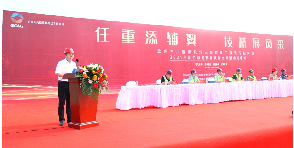 7月27日上午,由蘭州中川國際機場三期擴建工程現(xiàn)場指揮部主辦,我司與西安西北民航項目管理有限公司承辦,為期兩天的蘭州中川國際機場三期擴建工程2021年度“勞動競賽曁技能比武”活動順利開幕。蒞臨開幕式的領(lǐng)導(dǎo)有蘭州市蘭州新區(qū)黨群部秦副部長、蘭州市西固區(qū)總工會楊主席、蘭州中川國際機場三期擴建工程現(xiàn)場指揮部黨委書記、指揮長,黨委副書記、常務(wù)副指揮長等領(lǐng)導(dǎo),以及我司黨委書記、副總經(jīng)理和來自8家參賽單位的領(lǐng)導(dǎo)和參賽選手。