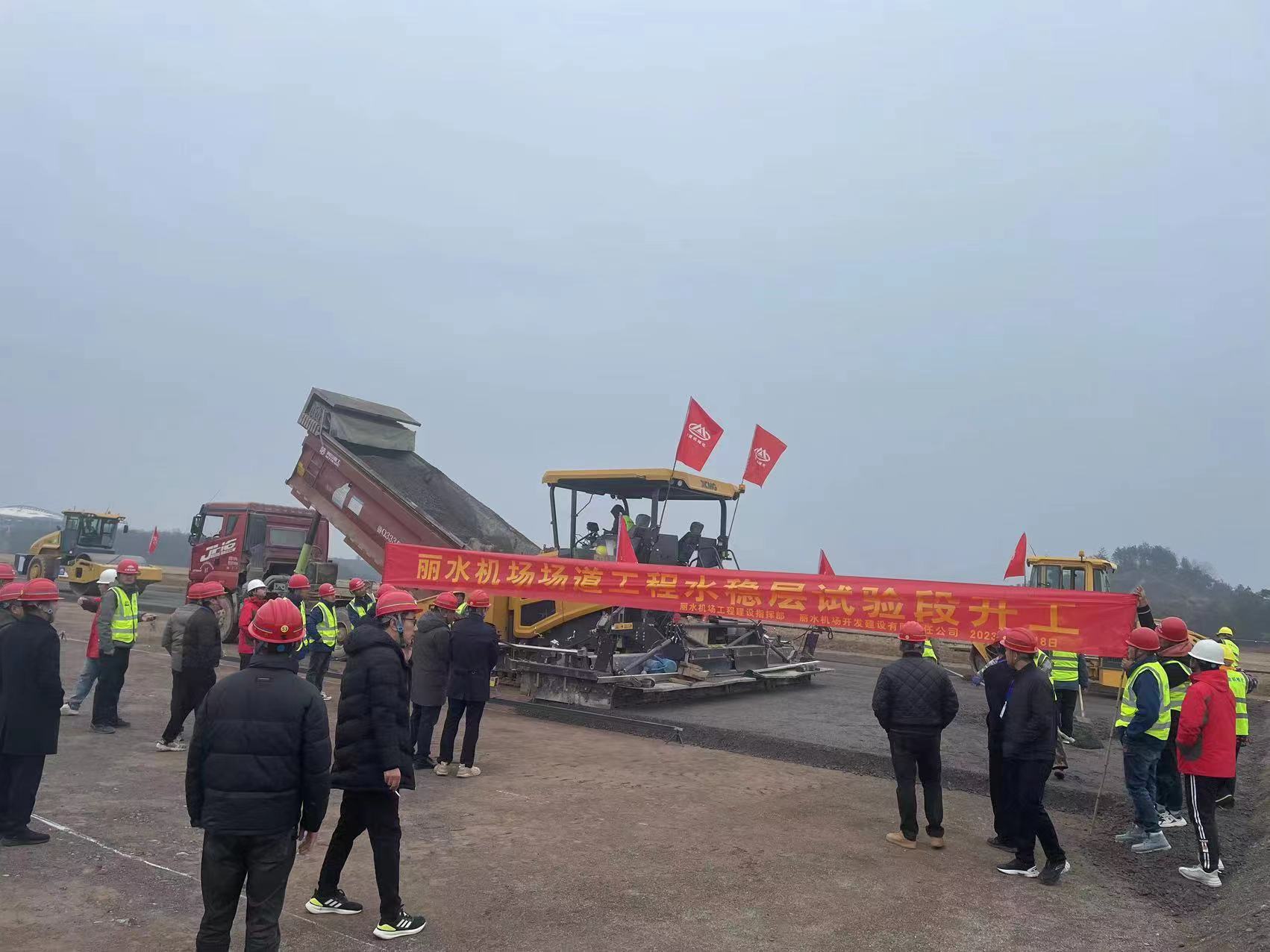 12月18日,伴隨著第一車水泥穩(wěn)定砂礫混合料緩緩倒入攤鋪機(jī)料斗,標(biāo)志著由我司承建的麗水機(jī)場場道工程水穩(wěn)基層試驗段施工正式拉開序幕。